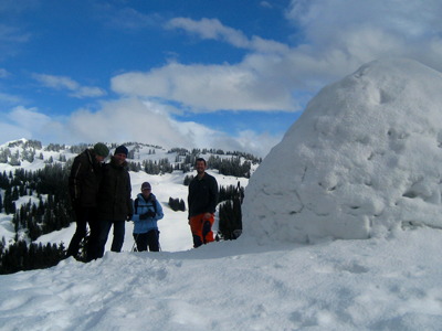 Im Team ein eigenes Iglu bauen. Unter fachkundiger Anleitung entsteht der Palast aus Schnee. Mit Schneesäge und Schaufel erlernt Ihr die Kunst des Iglubauens. Block auf Block wächst das Kunstwerk, aber Vorsicht, nur mit einer speziellen Technik schafft Ihr es die Kuppel zu bauen.