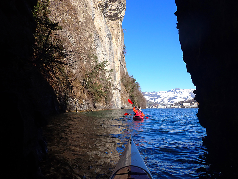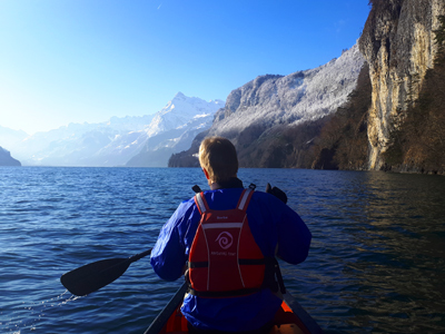 Machen Sie im Winter mit einem Kanadier oder Kajak eine Tour auf dem Vierwaldstättersee und geniessen Sie dieses aussergewöhnliche Wintererlebnis.
