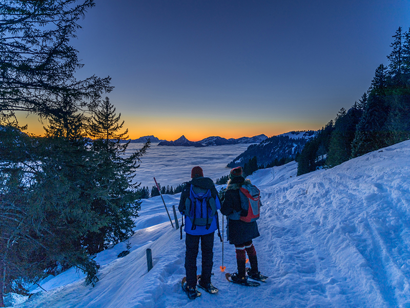Mit den Schneeschuhen durch die unberührte Winterlandschaft stapfen, aus dem Schatten treten und die wärmenden Sonnenstrahlen im Gesicht spüren: Das ist Schneeschuhwandern pur! Märchenhafte Winterlandschaften, tief verschneite Wälder und Bergspitzen macht die Zentralschweiz zu einem beliebten Ziel für Schneeschuhwanderer.